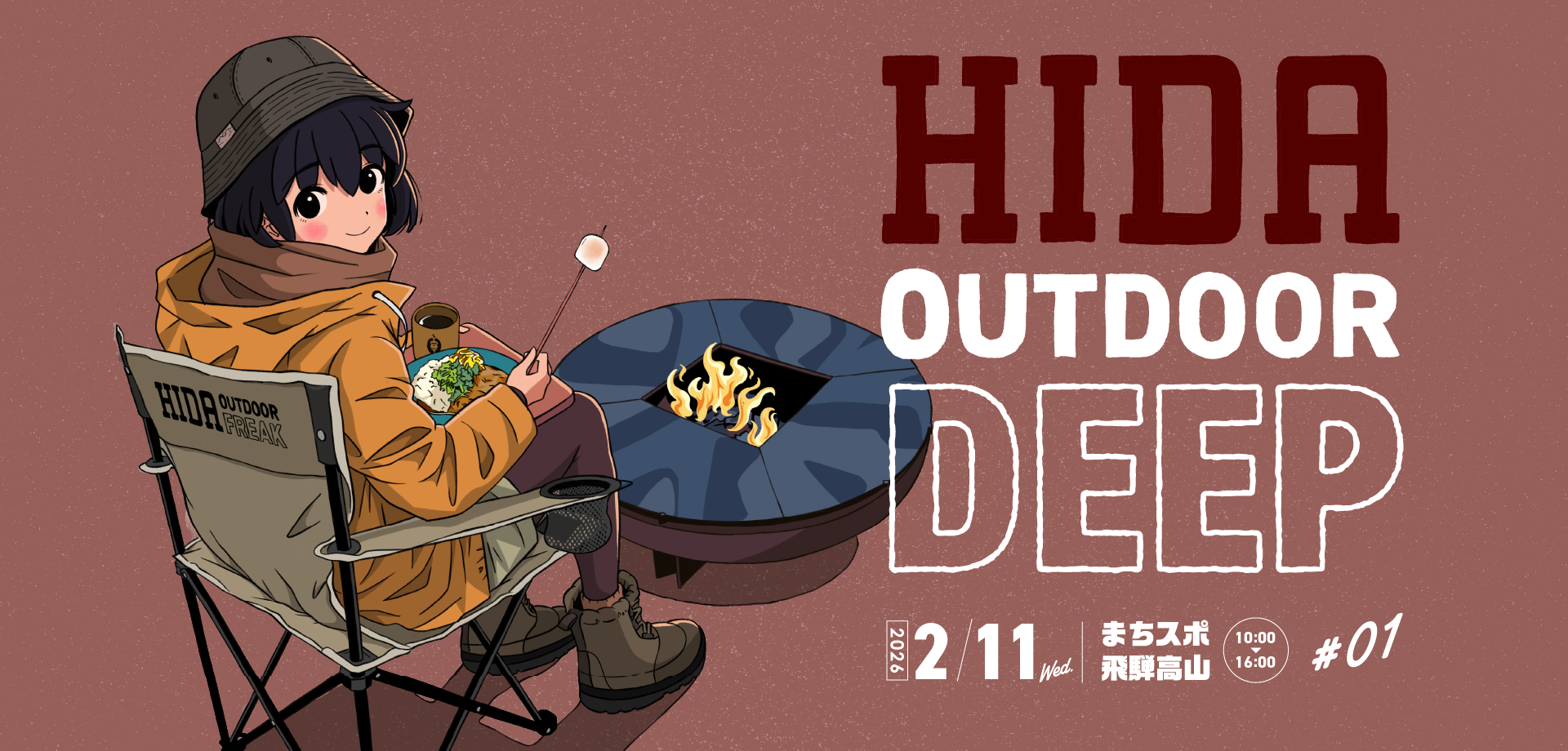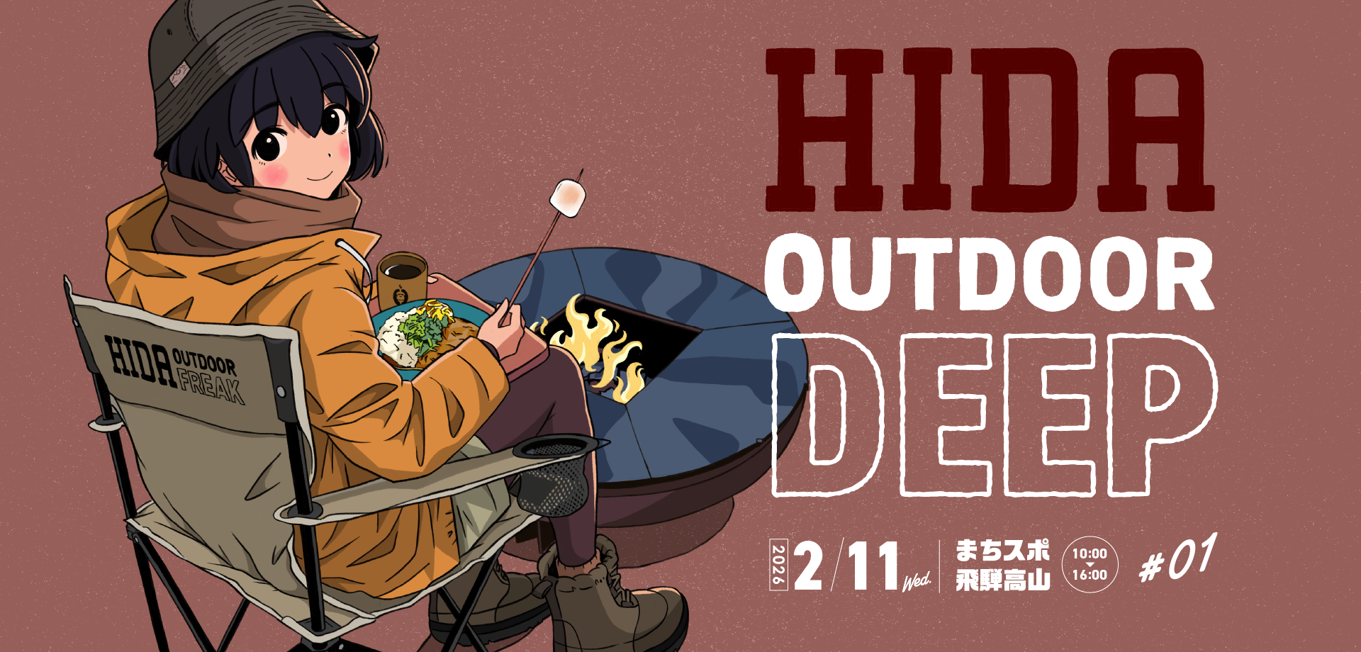 まちスポ飛騨高山で11月9日(日)ヒダアウトドアディープ#05 の初開催が決定!開催時間は9時〜16時。入場無料。雪天決行。初開催となるテーマは「冬のあったかアウトドア」。会場を暖かくキャンプ気分が味わえる空間として設営します。焚き火やキャンドルづくりなどのワークショップをはじめ、スパイスカレーやスペシャルティコーヒーなどの温かい催しをご用意しております。ぜひシェラカップやアウトドアチェアを持参して暖をとりながらゆったりとチルしませんか?