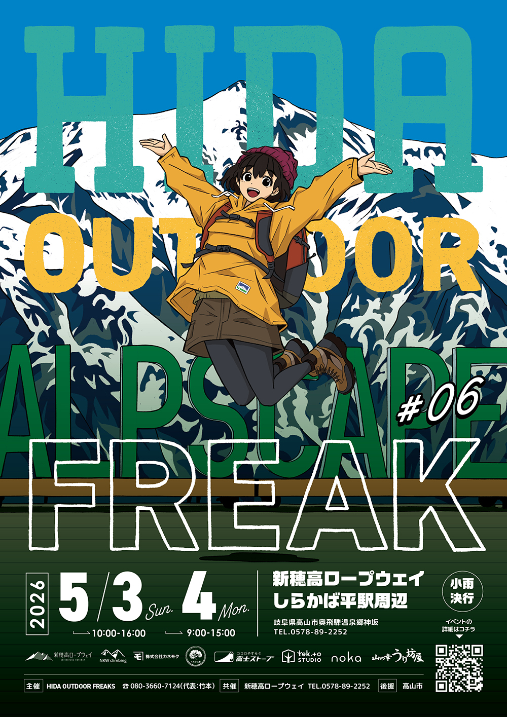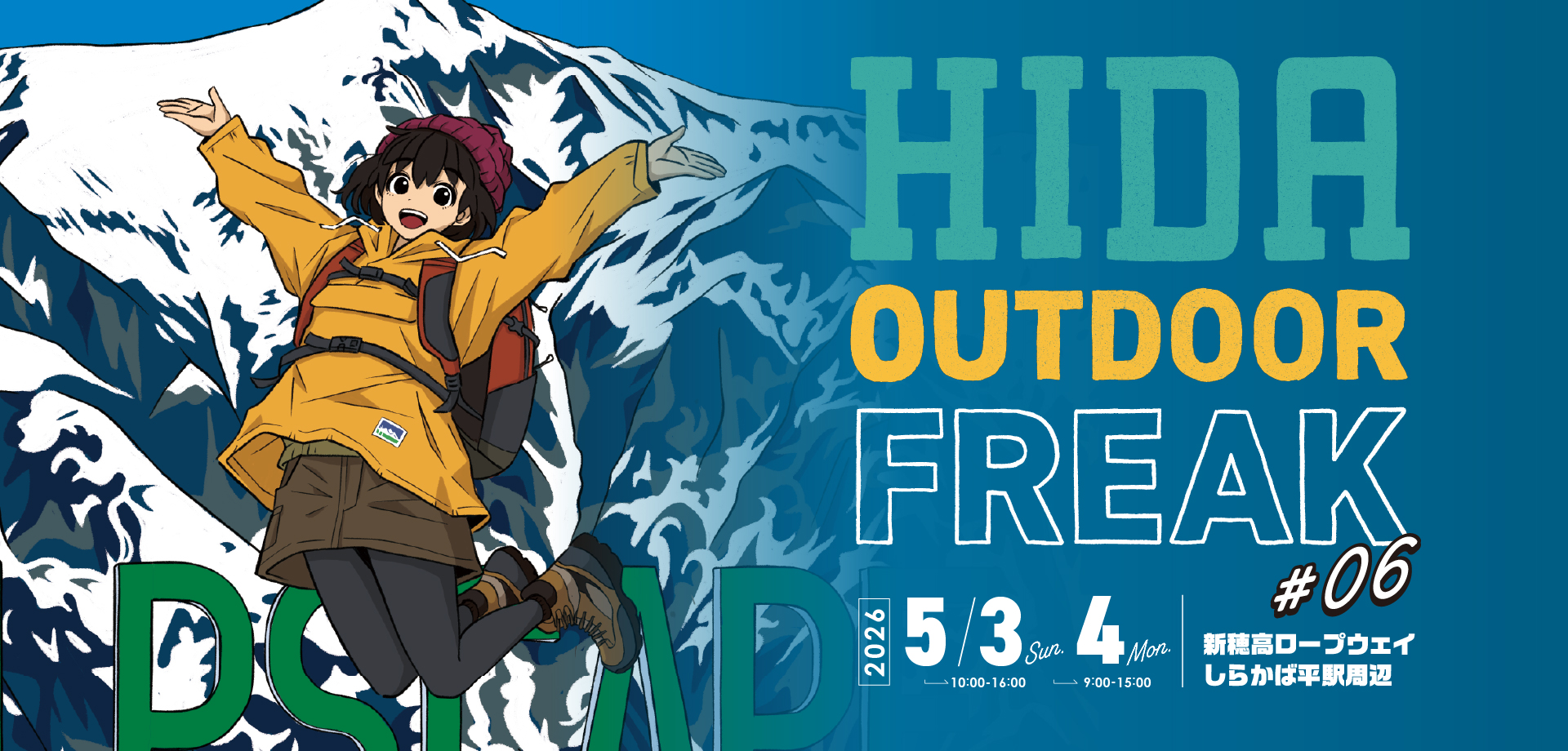 新穂高ロープウェイ(高山市奥飛騨温泉郷神坂)で5月3日(日)・4日(月)アウトドアイベント 「ヒダ アウトドアフリーク #06」の開催が決定! 開催時間は3日は10時~16時、4日は9時〜15時。入場無料。小雨決行。