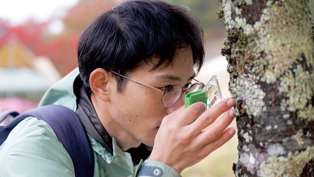 「地衣類」体験ブースでは、身近にいながらもなかなか触れ合うことのない菌類「地衣類」を、ルーペを用いて専門家が解説する観察会を開催! 新穂高に潜む多様な地衣類をスケッチして自分だけの地衣類図鑑を作ってみましょう。提供はくらどに屋。