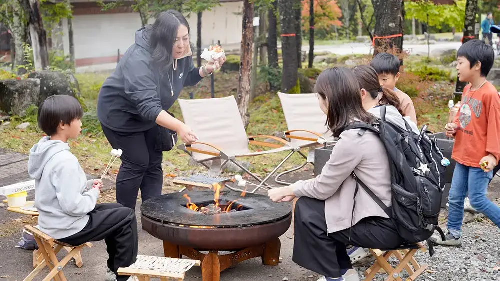 飛騨地方を中心に薪ストーブの販売、メンテナンスを行う「富士ストーブ」からは、薪割り体験をはじめ、テントサウナ体験、焚き火台を設置し、マシュマロを焚き火で焼く体験を開催します。